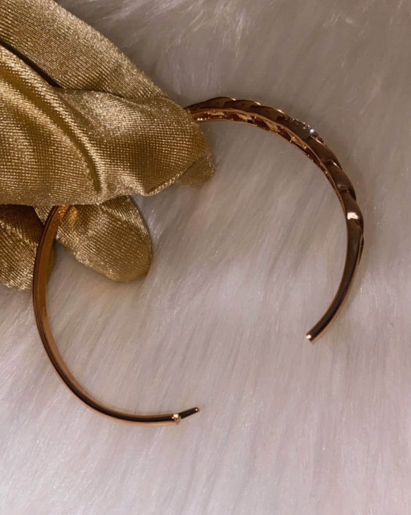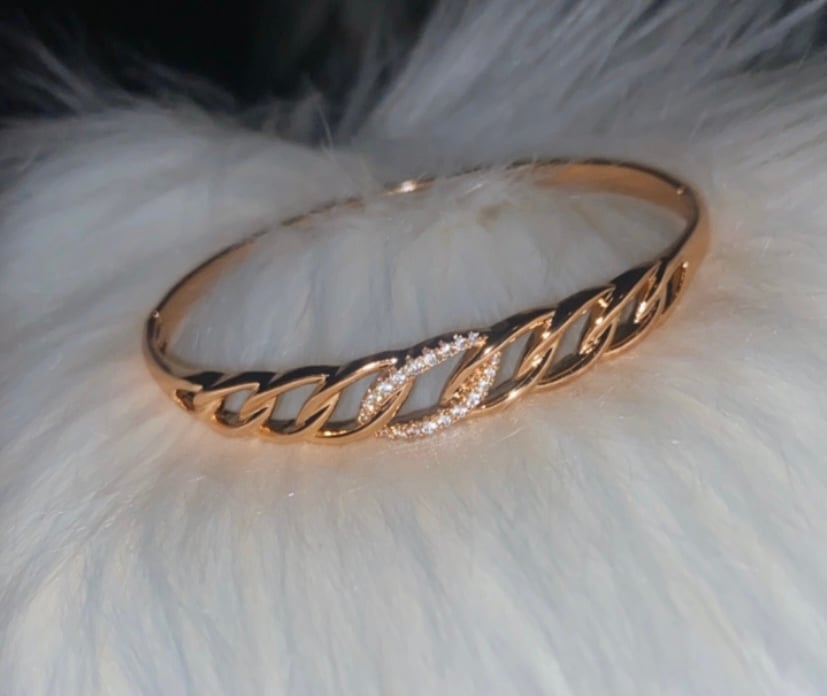 Cute bangle, squeeze to open snap to fasten. Slim and sleek fits small to medium size wrist.
