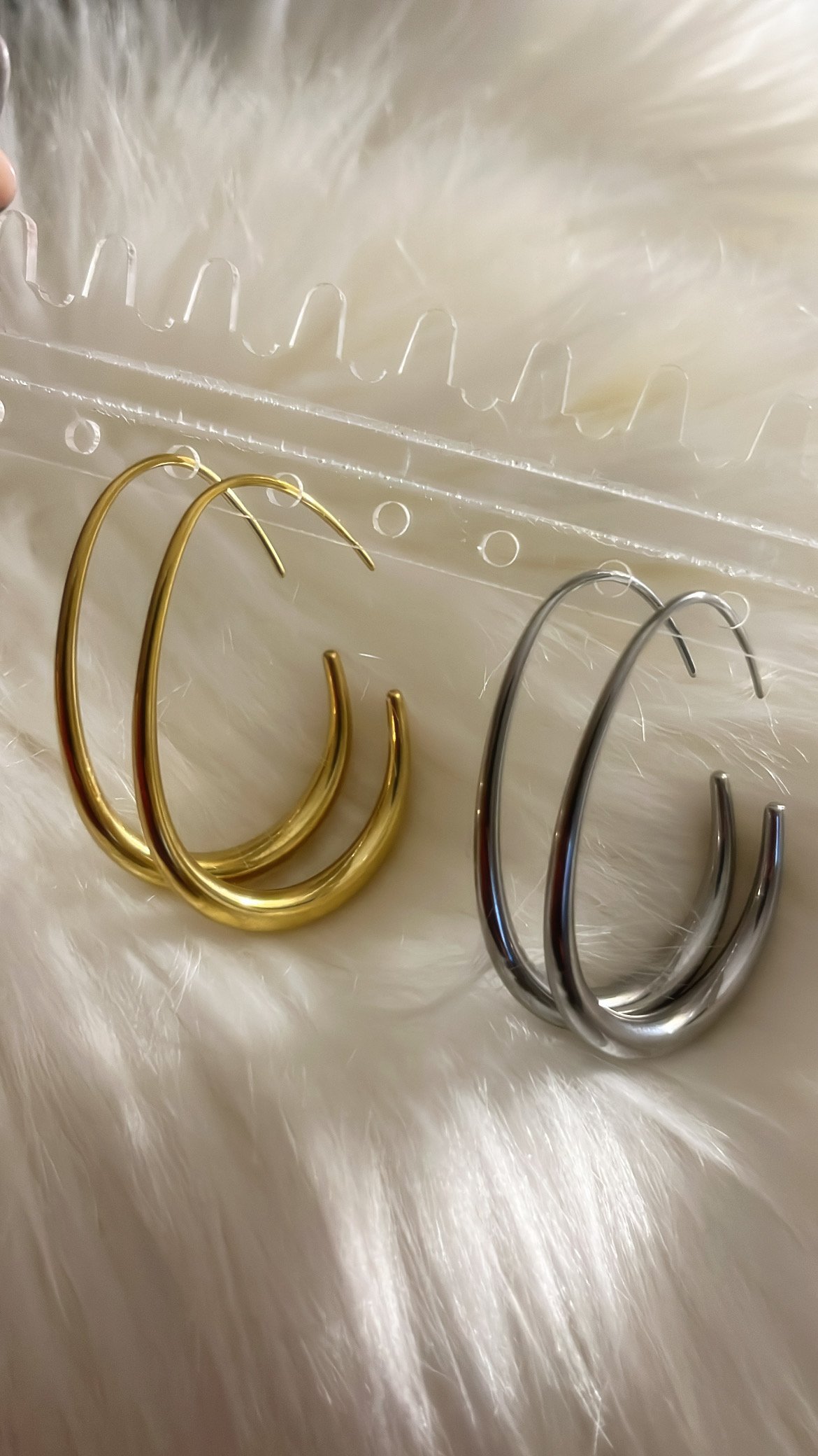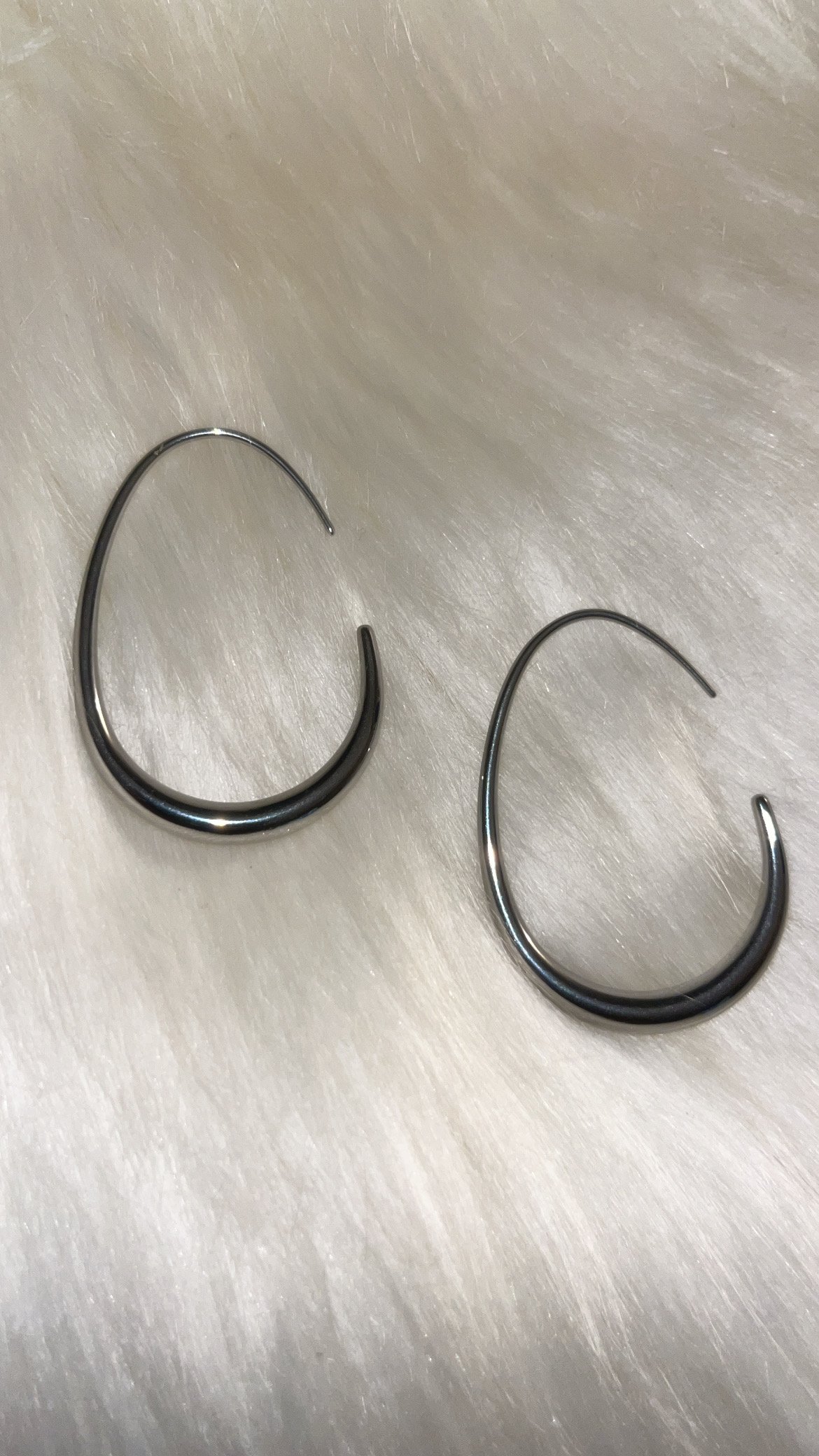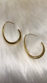 Gold and silver available, really cute pair, very unique. 18k gold plated stainless steel. Circular teardrop hoops.